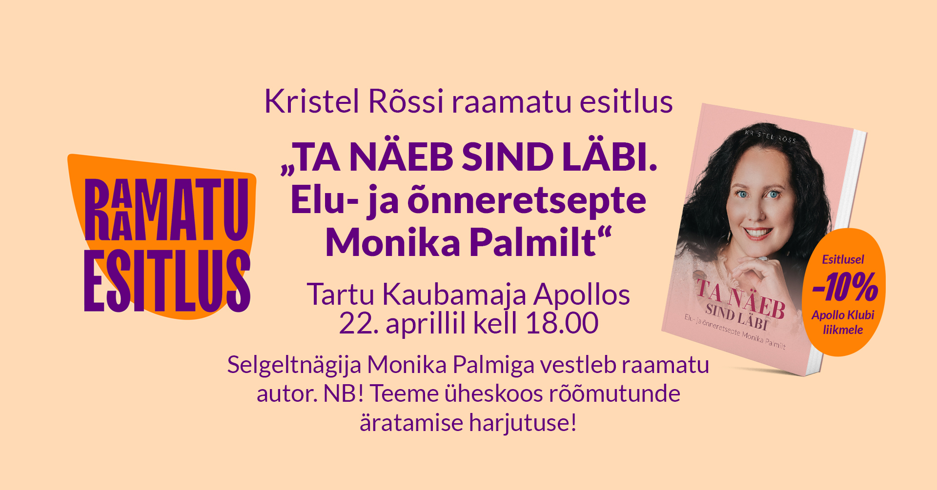 22. aprillil kell 18.00 – Tartu Kaubamaja Apollo raamatupoes toimuval esitlusel.